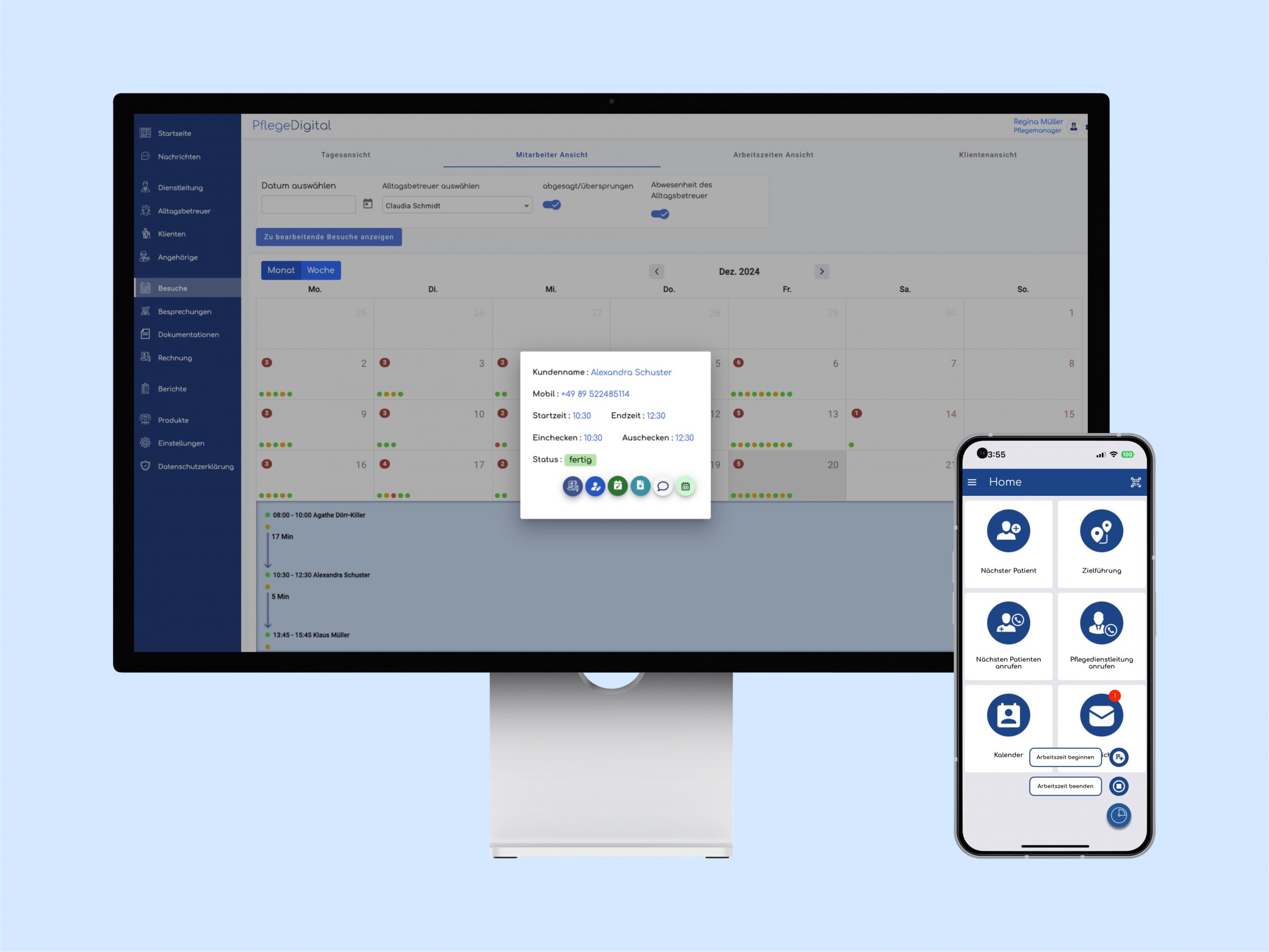 Schnellere Planung langfristiger Betreuungsaktivitäten sowie täglicher Besuche